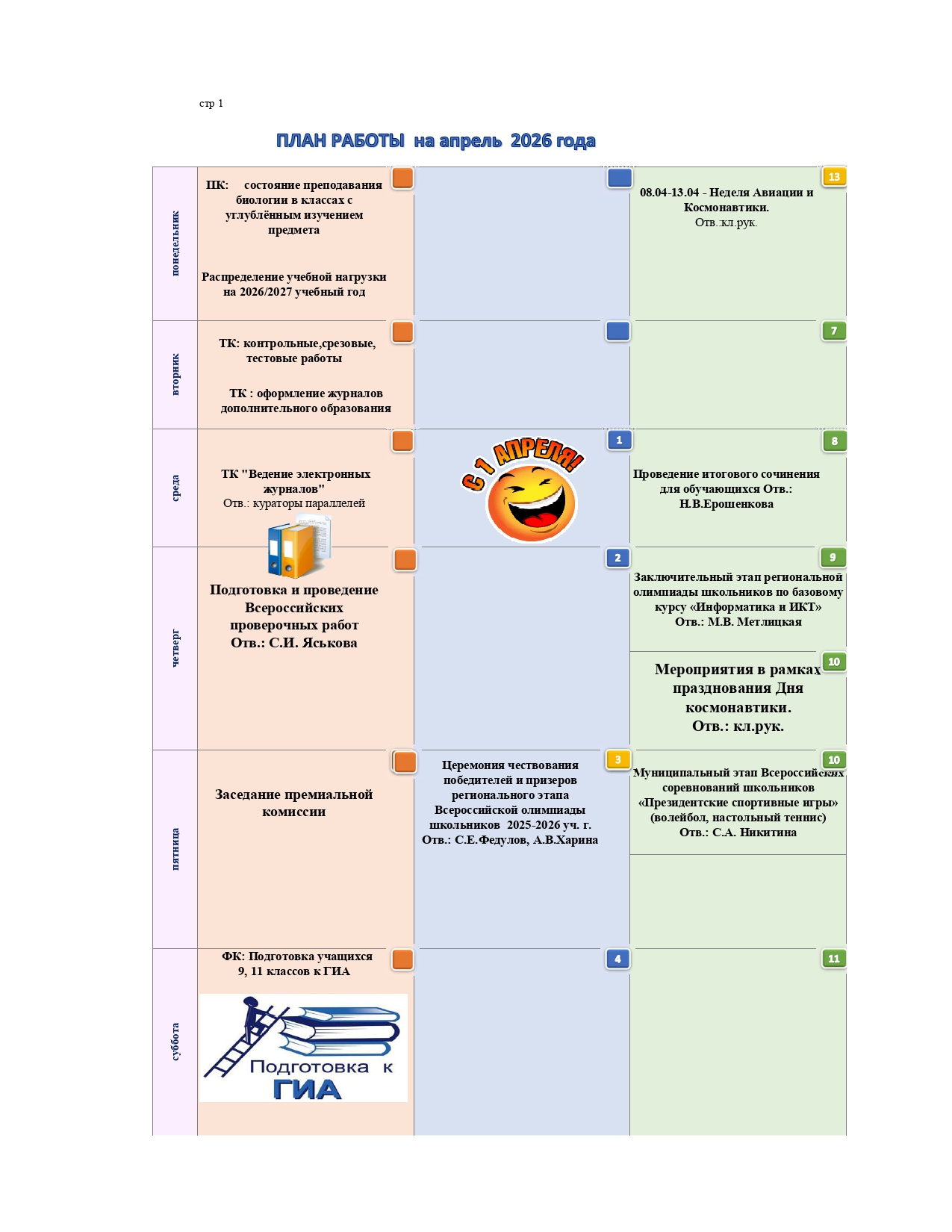 • План работы лицея